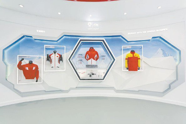 “冬奥同行”展区内,承载着岁月记忆的领奖服静静陈列,2026年米兰冬奥会中国体育代表团室外领奖装备摆在了显眼的位置(见下图),红白相间的配色灵动大气,既贴合冬日奥运的氛围,又彰显着中国风采。